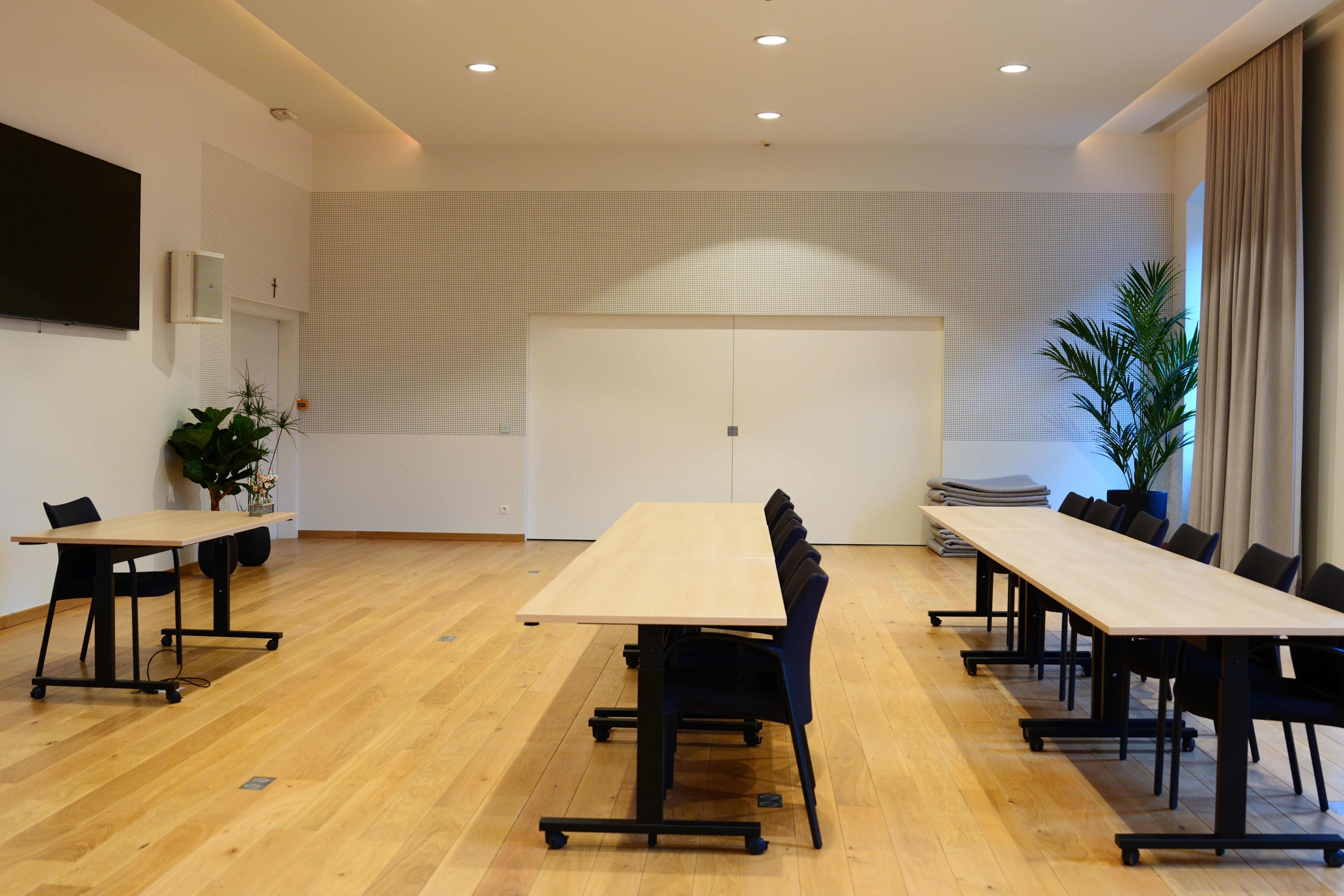 Deze zaal is recent vernieuwd en voorzien van alle technologische snufjes waardoor ook live streaming mogelijk is. Er zijn tafels en comfortabele stoelen voorzien. Een beamer of flipchart kunnen bijkomend gehuurd worden.